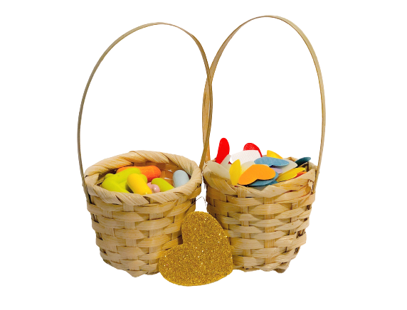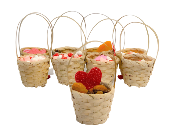 תיאור המוצר: מיני סלסלת קש עם ידית. מתאים לסוכריות ושוקולדים קטנטנים. ניתן להוסיף סרטים לעיצוב ושדרוג