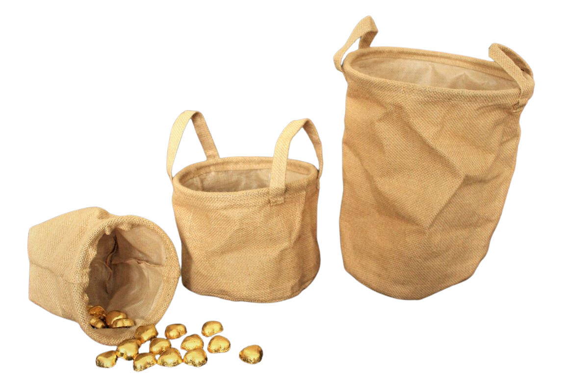שקי יוטה עגולים עם בסיס ועם ידיות